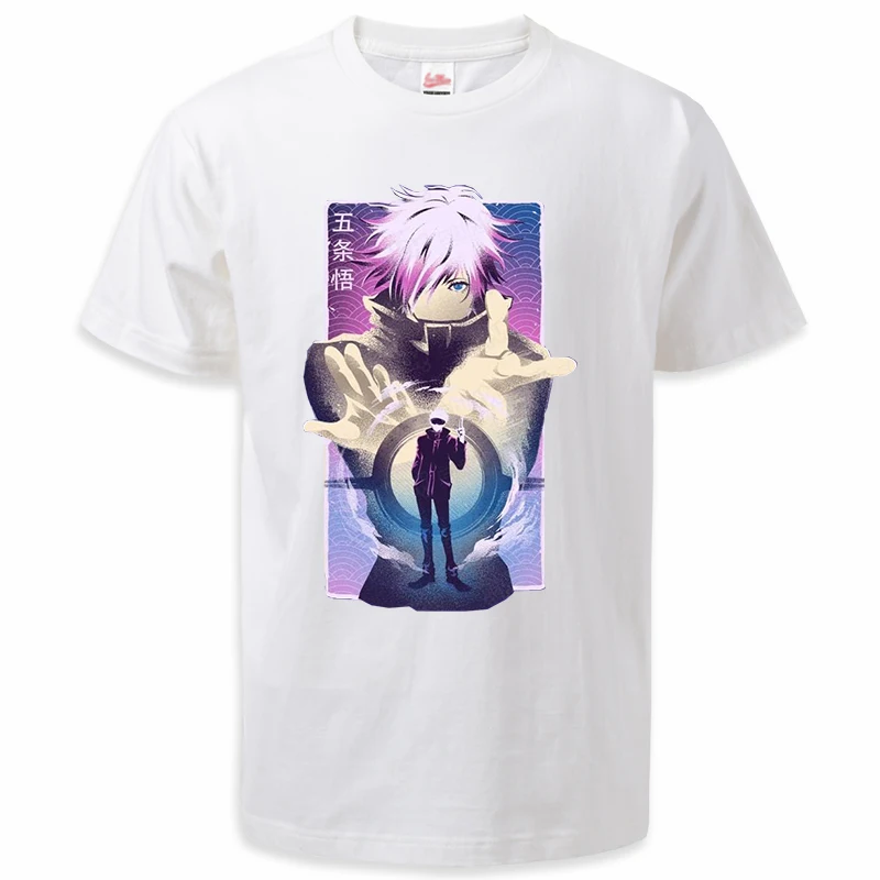 Футболка с круглым вырезом для мужчин и женщин, крутая тенниска с принтом аниме и японского аниме, крутая майка годжо Сатору в стиле Харадзюку, лето 2023