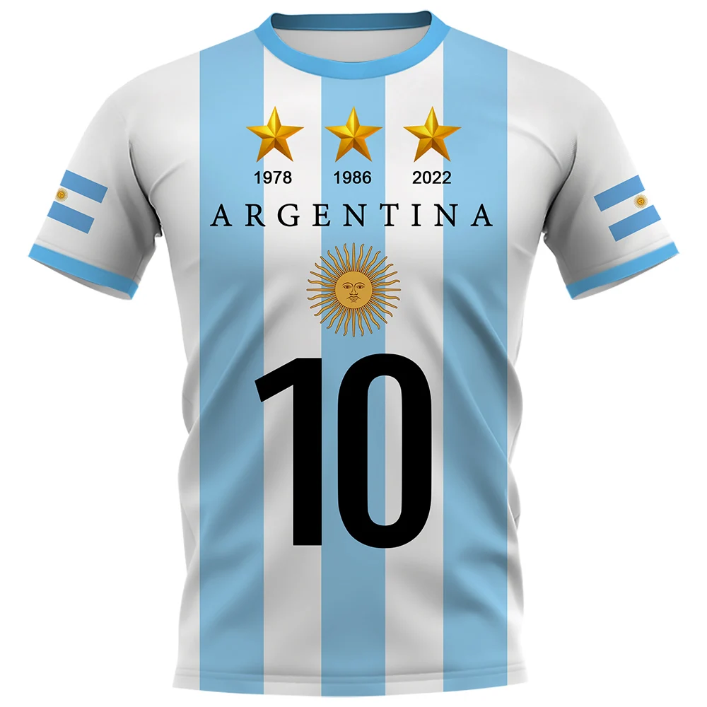 Футболка с номером 10 Аргентины 2023, футболка Аргентины с 3 звездами, женские и мужские футболки, уличная спортивная одежда, футболки, топы