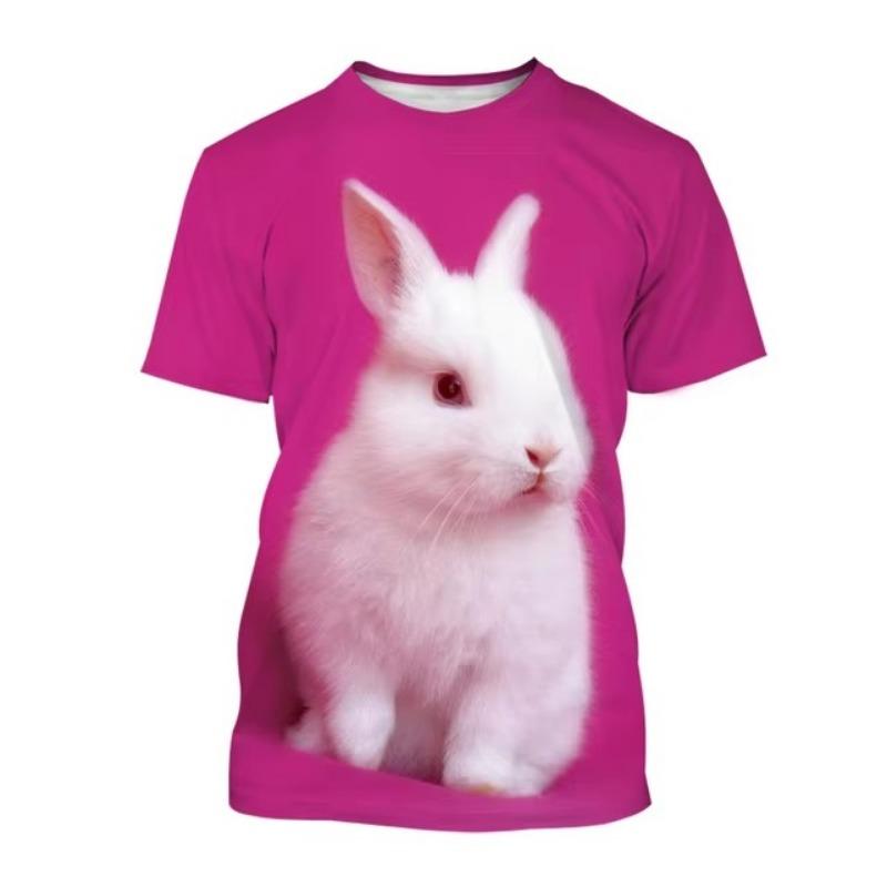 Футболка с принтом «Милый кролик» 3D, мужские футболки с круглым вырезом, повседневные футболки с коротким рукавом, свободные футболки в стиле Харадзюку, топы, детская одежда 2XL