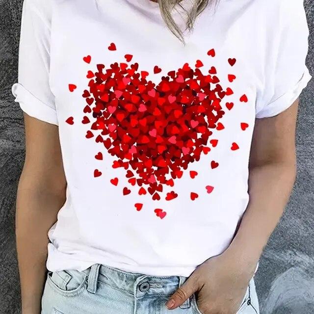 Футболка с принтом в виде сердца для подарков ко Дню святого Валентина, футболка с коротким рукавом с круглым вырезом, повседневные топы, одежда WoUnisex S