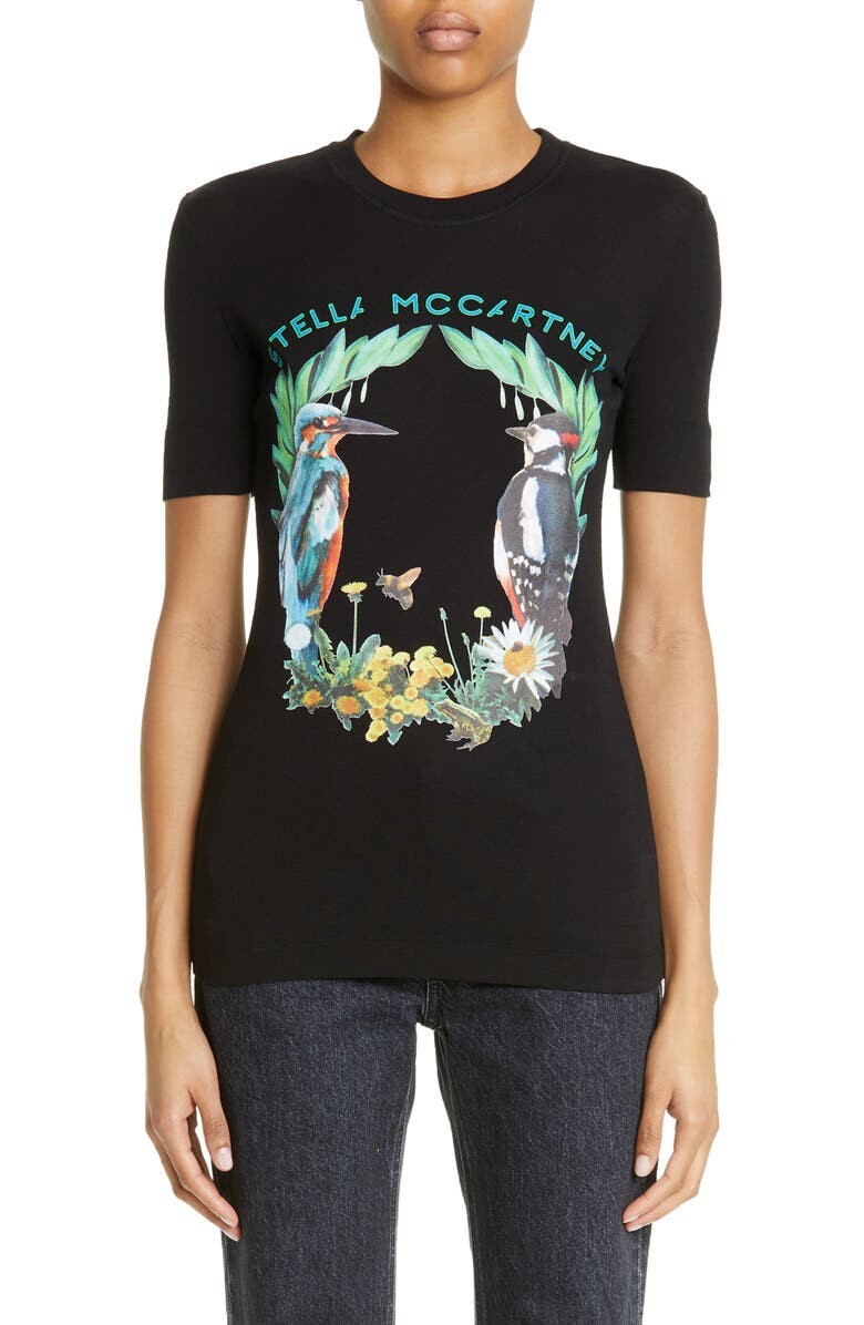 Футболка с рисунком из хлопковой смеси Bird Crest STELLA MCCARTNEY, черный
