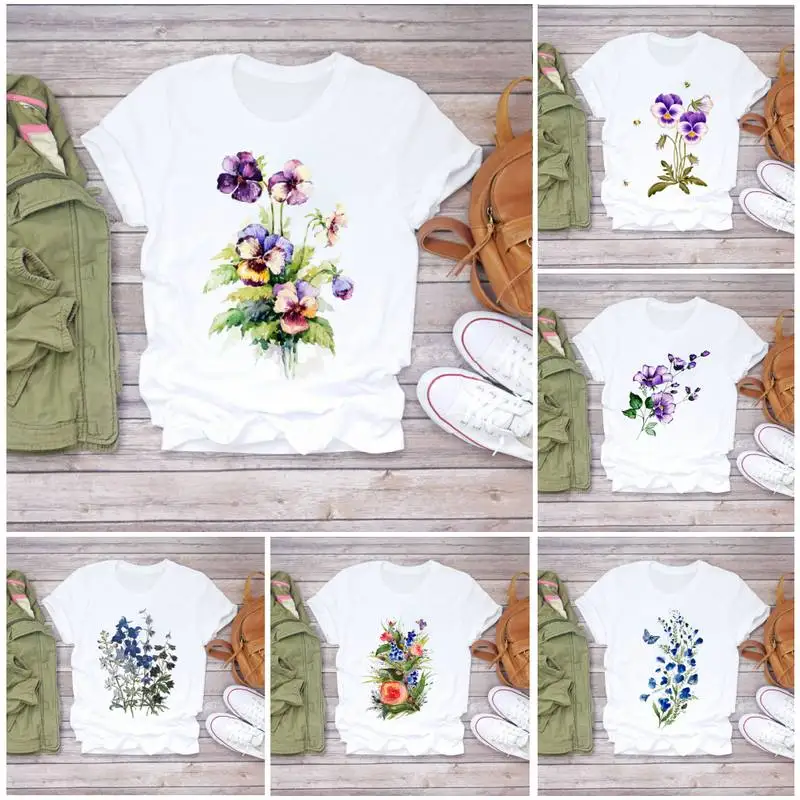 Футболка с цветочным принтом, женская летняя одежда, повседневная женская и Мужская футболка, уличная одежда в стиле хип-хоп с круглым вырез...