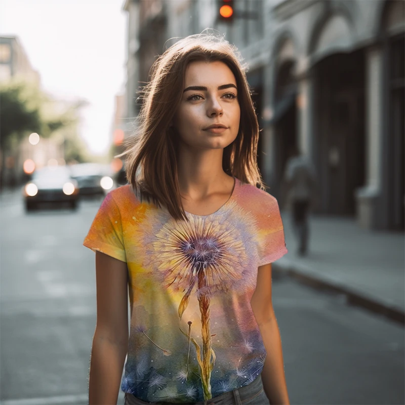 Футболка с 3D-принтом одуванчика, женская Свободная Повседневная футболка с круглым вырезом, простая футболка с коротким рукавом, летняя новая модная футболка