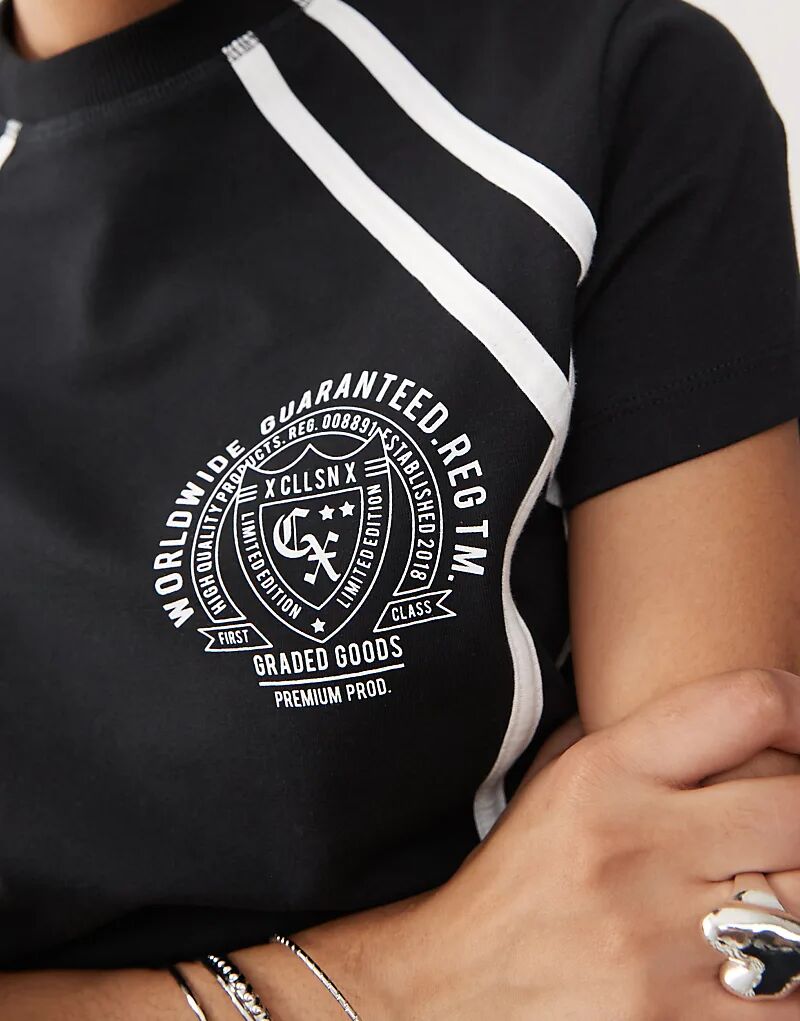 Футболка укороченная черная COLLUSION со спортивной окантовкой (часть комплекта)