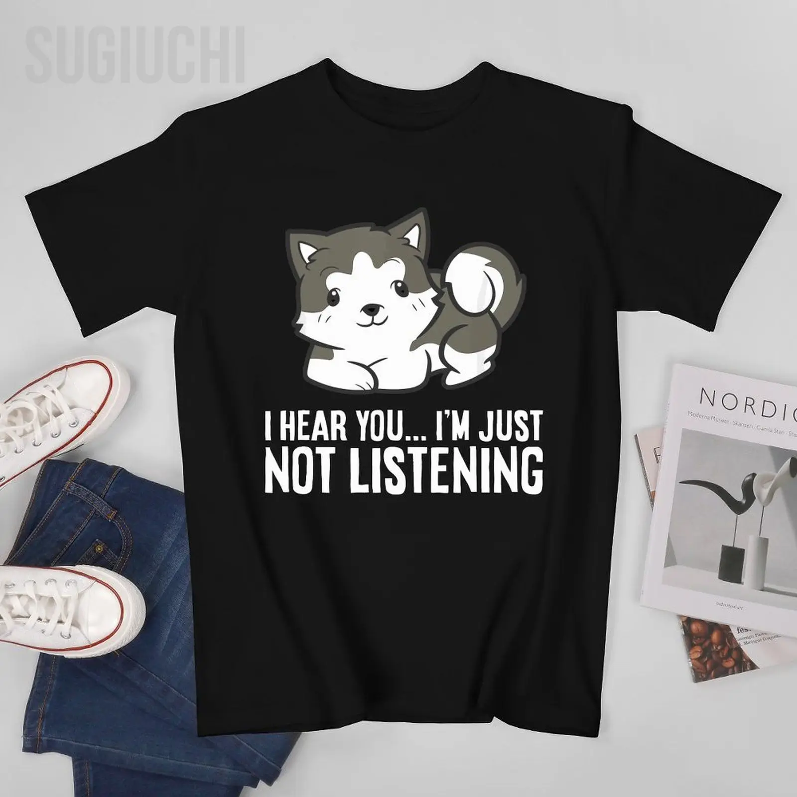 Футболка унисекс, 100% хлопок, Хаски, собака, я тебя люблю, я просто не слушаю, Сибирский хаски