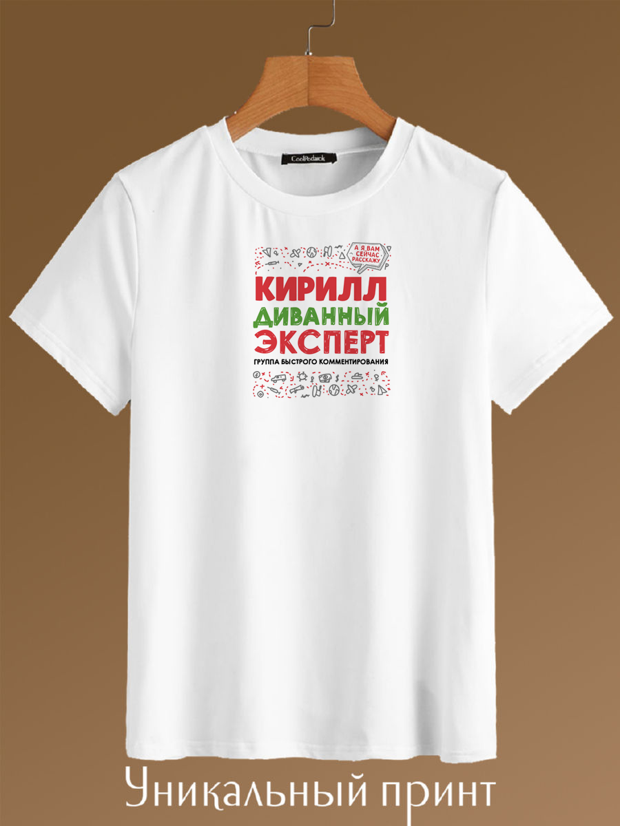 Футболка унисекс CoolPodarok Кирилл диванный эксперт белая 46 RU, Белый, Кирилл диванный эксперт