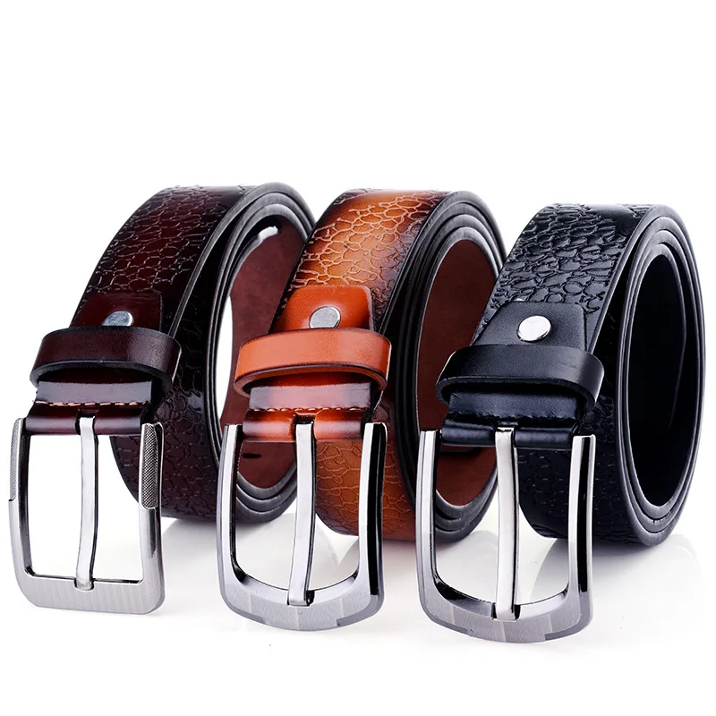 New embossed crocodile pattern pin buckle men's belt pu leather alloy buckle head retro business jeans trousers belt