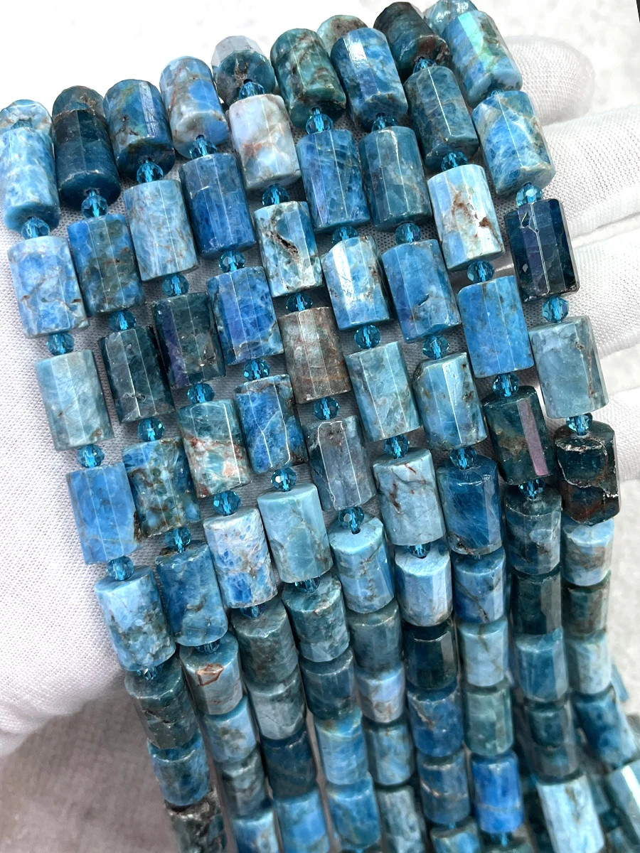 Бусины Из Натурального голубого апатита, Хрустальный цилиндрический камень, граненые, незакрепленные бусины для изготовления ювелирных изделий, ожерелий, браслетов, 15 дюймов