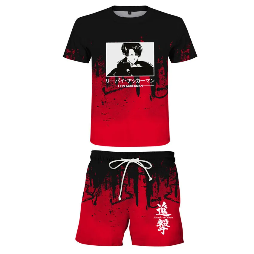 Футболка и шорты для мальчиков, с коротким рукавом и 3D-принтом «атака на Титанов»