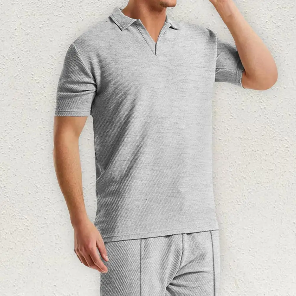 Футболка и шорты мужские тонкие с V-образным вырезом и широкими штанинами