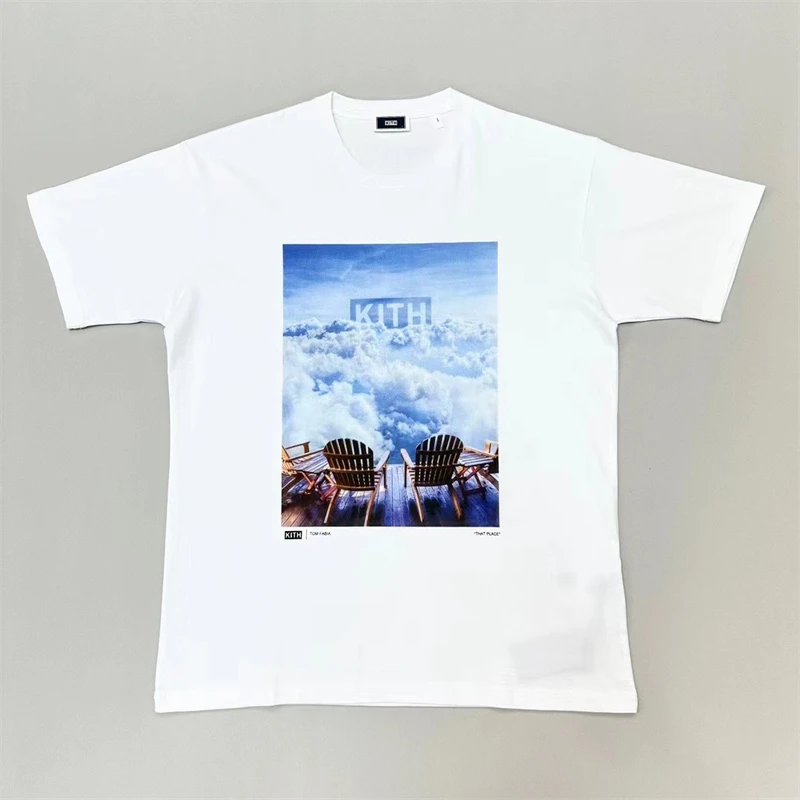 Футболка 2023ss KITH для мужчин и женщин, хлопковая оверсайз футболка с цветным светящимся рисунком, топы