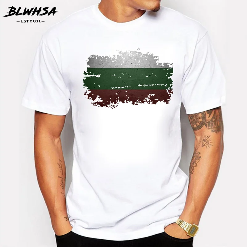 Футболка BLWHSA мужская с коротким рукавом, простой стиль, Повседневная рубашка из органического хлопка, с принтом флага Болгарии, Ностальгиче...