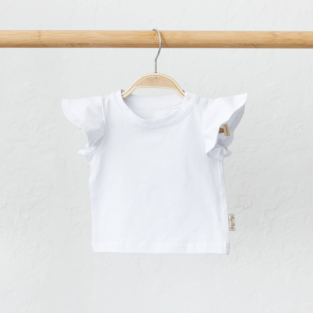Футболка сделана из 100% хлопка. И для особой обаятельности и привлекательности мы сделали нежные воланчики на рукавах.