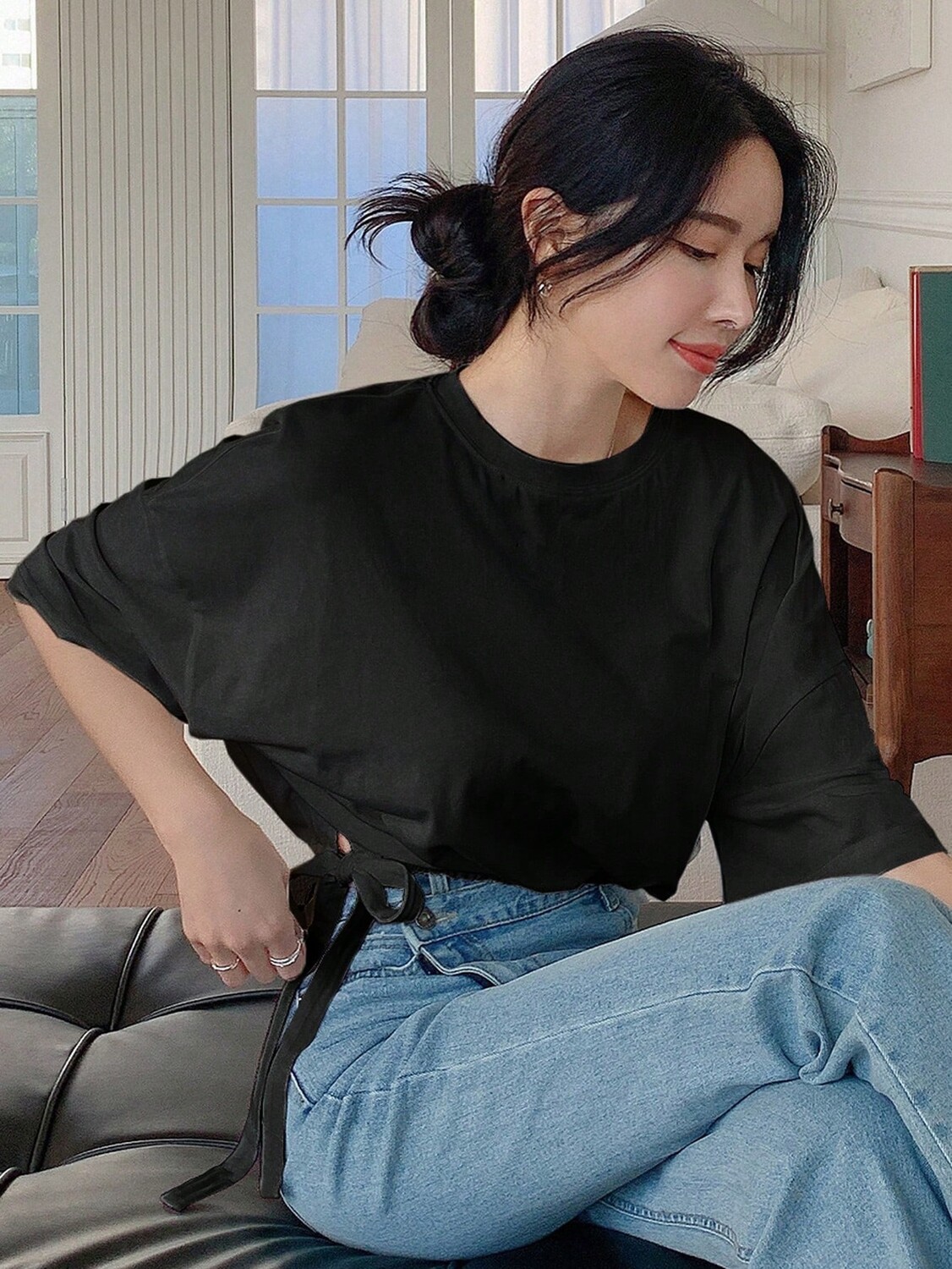 Футболка DAZY, однотонная, с коротким рукавом, черный цвет