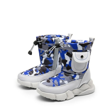 BURUDANI Kids Mid Calf Winter Snow Boots Color GREY/BLUE/BLACK/WHITE Size 11