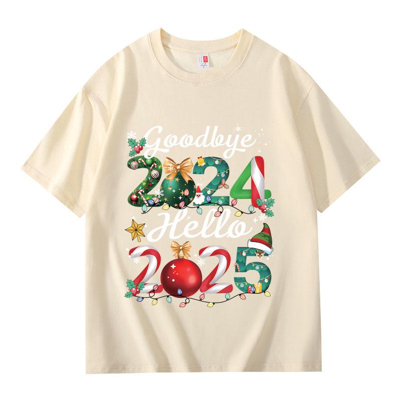 Футболка Funny Goodbye 2024 Hello 2025 для мужчин и женщин с коротким рукавом и 3D-принтом, семейные футболки с надписью «Счастливого Нового года», праздничные топы 3XL хаки