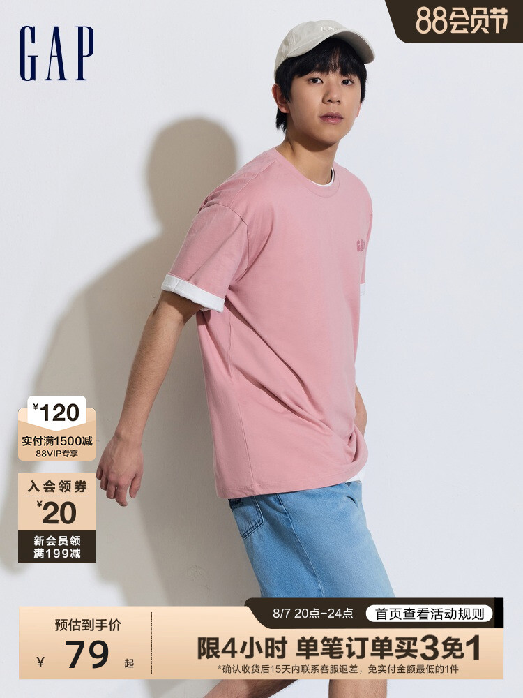 Футболка Gap с короткими рукавами и круглым вырезом, розовый