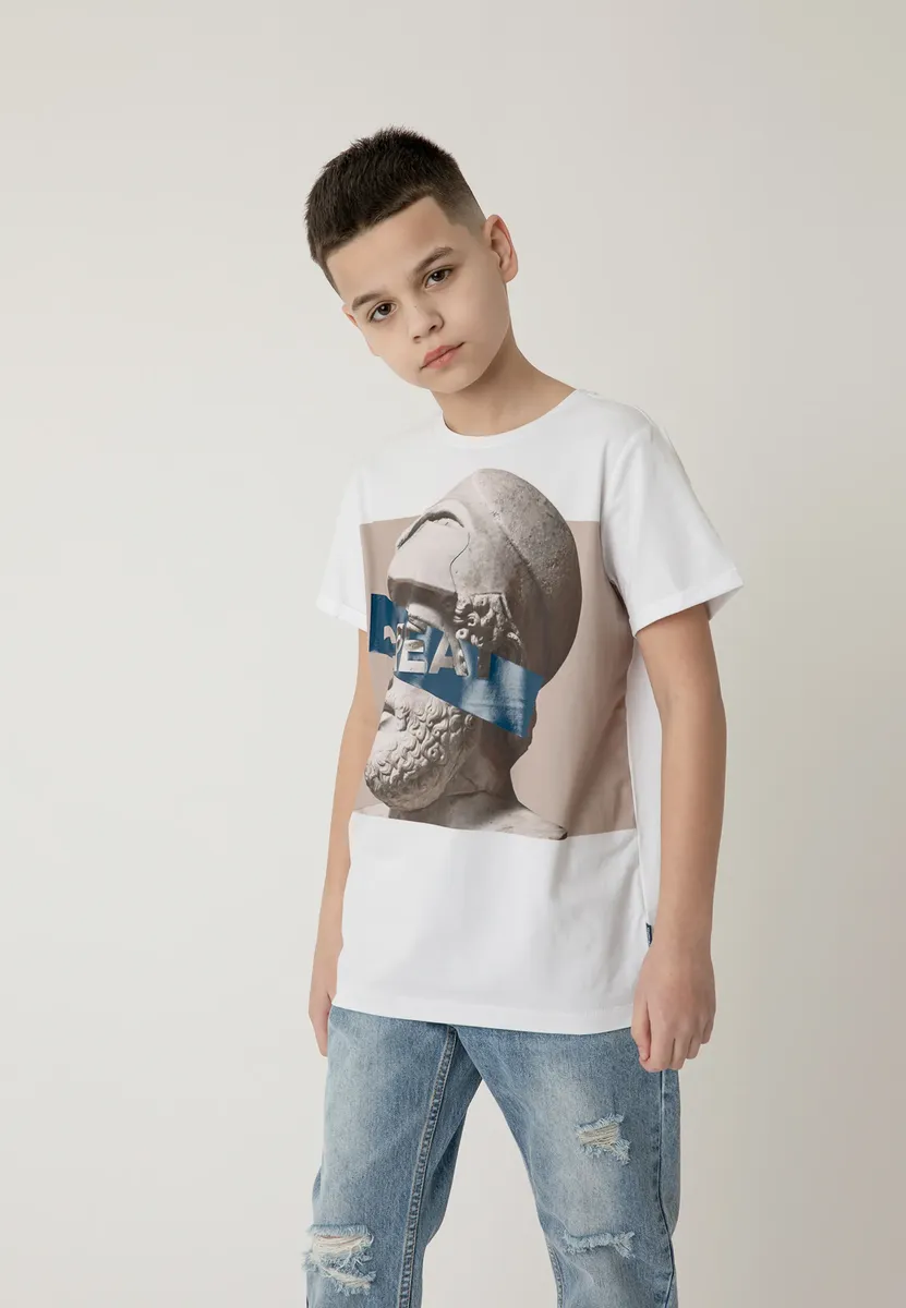 Модная детская футболка с короткими рукавами и модным принтом. Изготовлен из высококачественного материала для абсолютного комфорта. С удобным круглым вырезом. Высочайшее качество, подходит для машинной стирки. Для стильных детей, сочетается с любым повседневным нарядом.