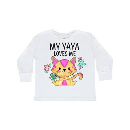 Inktastic My Yaya Loves Me with Cute Kitten and Flowers Gift Toddler Boy or Toddler Girl Long Sleeve T-Shirt