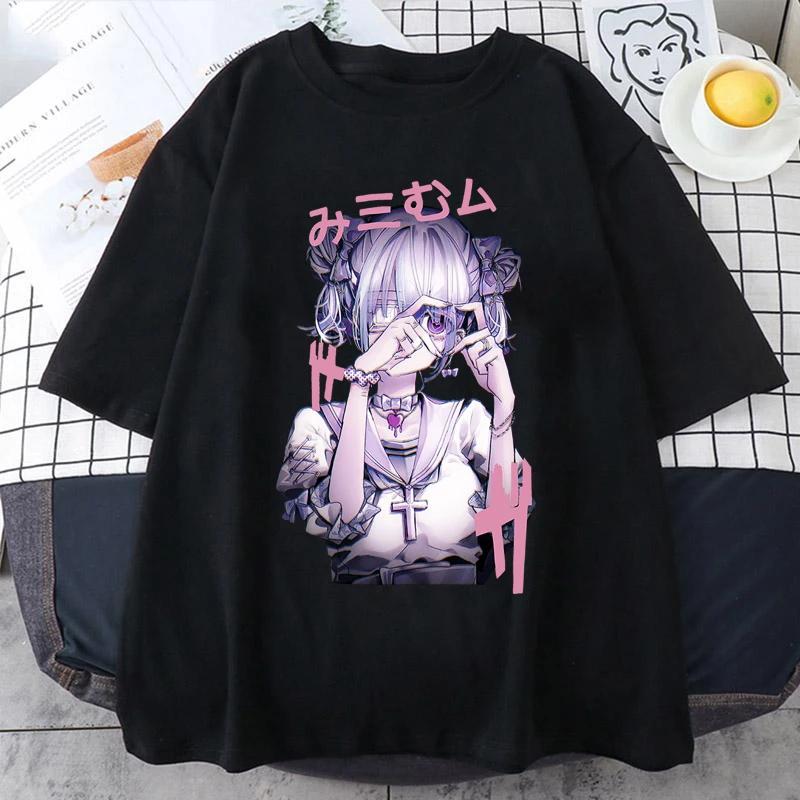Футболка Kurono Kyou Anime, летняя спортивная беговая футболка с коротким рукавом, модная свободная спортивная футболка в стиле панк Y2K для девочек и женщин, косплей, футболка XS чёрный