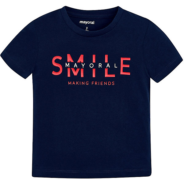 Футболка спереди декорирована надписью. Воротник круглой формы с мягкой окантовкой. Внутри полоска контроля чистоты. Прямой крой и комфортная посадка обеспечивают свободу движений. Натуральная ткань обладает дышащими свойствами.