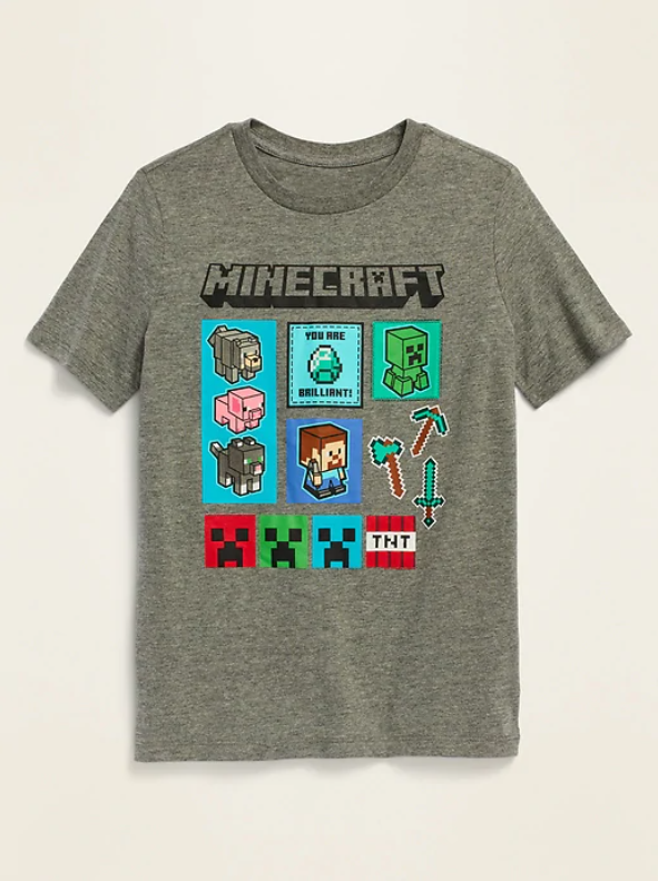 Футболка NWT OLD NAVY для мальчиков Minecraft You are Brilliant Creeper Steve L 10 12, Heather gray