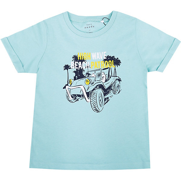 Классическая футболка, спереди принт. Рукава с небольшими отворотами. Горловина оторочена эластичным кантом. Материал натуральный и дышащий.