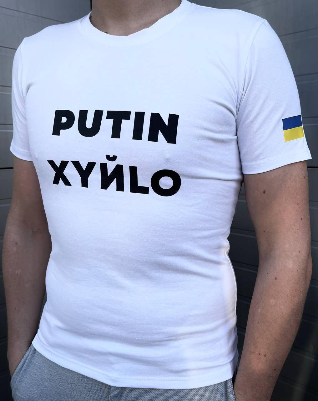 Классическая однотонная футболка на каждый день с фирменным принтом. Спереди по центру накатан большой принт