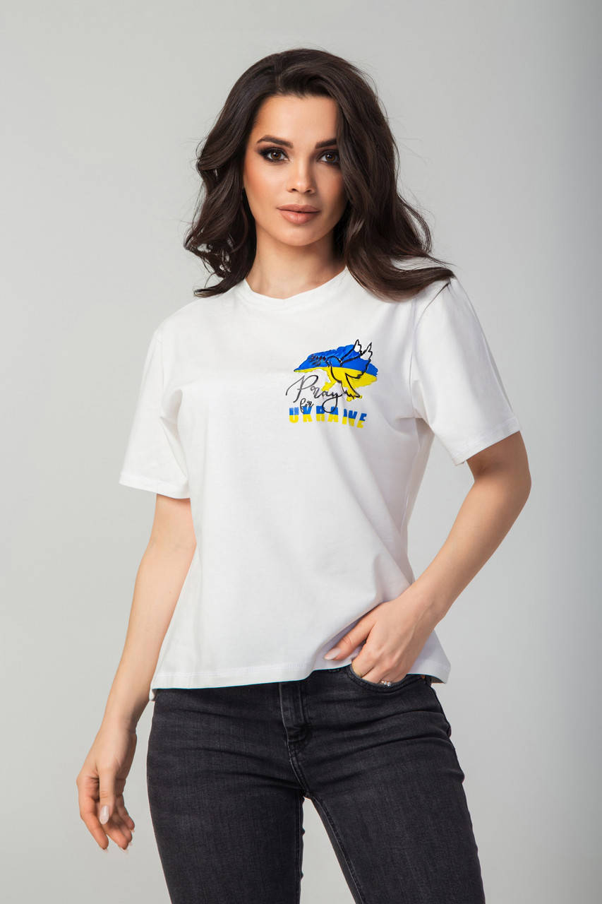 Футболка "Pray for Ukraine" , колір білий , розмір 44-46, Белый