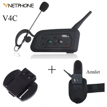 Vnetphone V4C Bluetooth Intercom Full Duplex Two-way Football Coach Moto Helmet Earhook Earphone Communication System FM 4 Rider