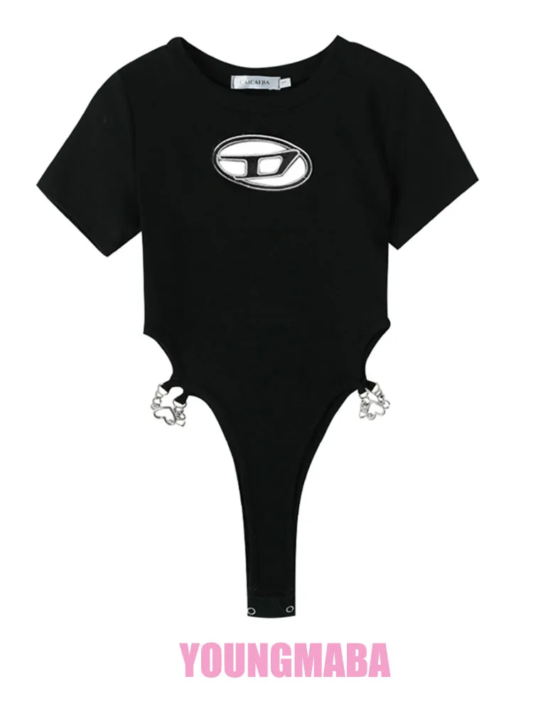 Футболка Y2K женская с коротким рукавом, пикантный Топ острых цветов, пикантная рубашка с вырезами, черный цвет, на лето