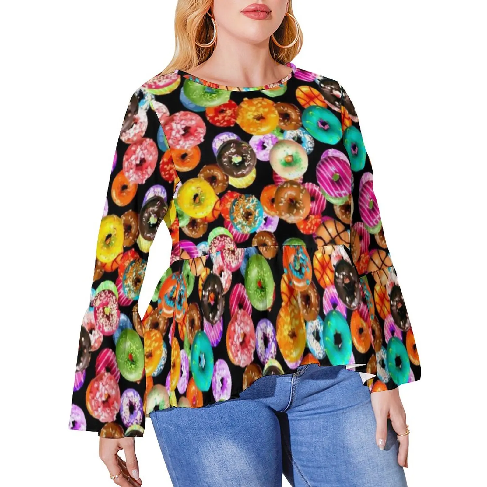 Футболка Yummy с принтом пончика, цветная корейская мода, футболки с длинным рукавом, смешная футболка с графическим принтом, осенняя футболка
