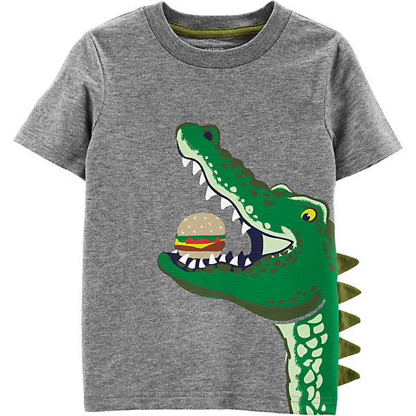 Футболка с коротким рукавом. Классический крой, прямой силуэт. Круглая горловина с широкой окантовкой. Изготовлена из качественного материала. Декорирована забавным принтом с крокодилом и 3D-деталями. Натуральная ткань превосходно дышит.