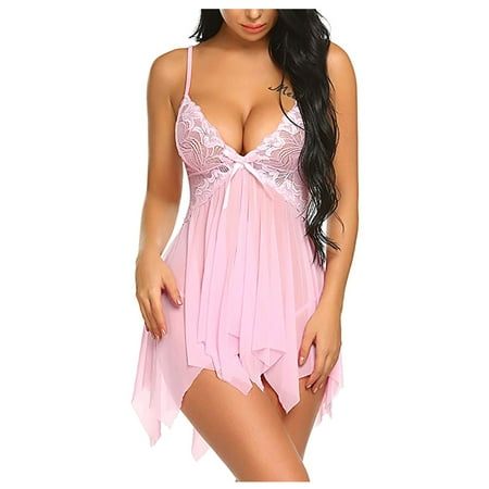 Mlqidk Lingerie for Women Lace Babydoll Honeymoon V Neck Sleepwear Boudoir Open Front Negligee Outfits