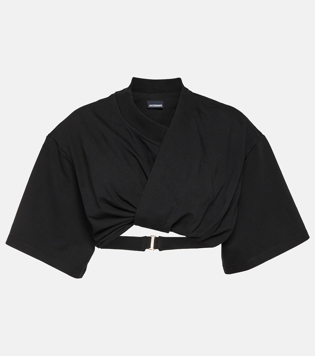 Футболка le bahia court, хлопковый укороченный топ Jacquemus, черный