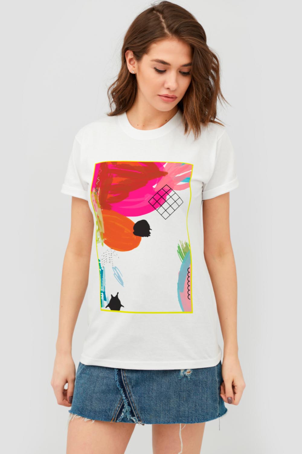 Футболка женская из 100% хлопка, плотностью 150 г/м. Принт, с дышащим эффектом, напечатан технологией прямой цифровой печати (DTG). Рост модели - 175 см