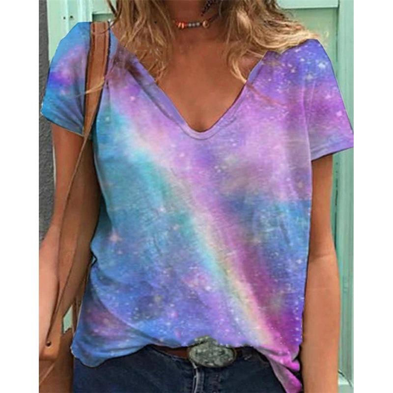 Футболки больших размеров весна-лето горячая цветная футболка с принтом граффити и V-образным вырезом с короткими рукавами 5xl разноцветный
