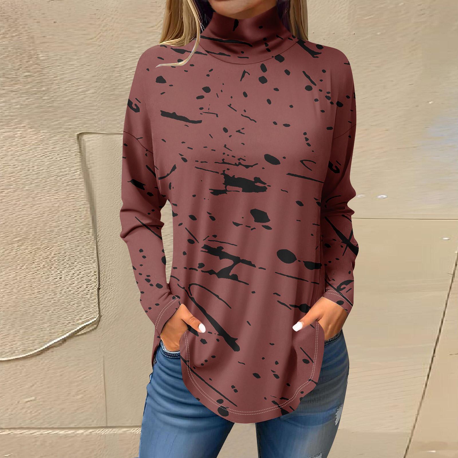 Футболки для женщин, осенние повседневные рубашки с длинными рукавами, толстовка с винтажным принтом, топ с высоким воротом, пуловер XL киноварь