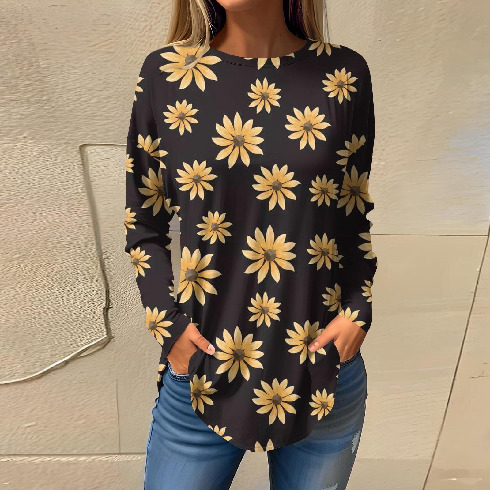 Футболки для женщин, осенние повседневные рубашки с длинными рукавами, толстовка с ретро-принтом, топ, пуловер XL жёлтый