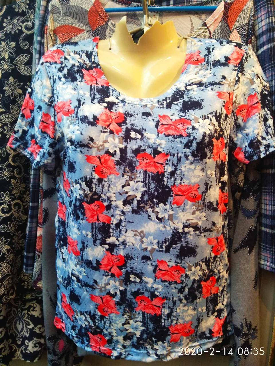 Футболки женские трикотажные с округлым вырезом в цветочный принт