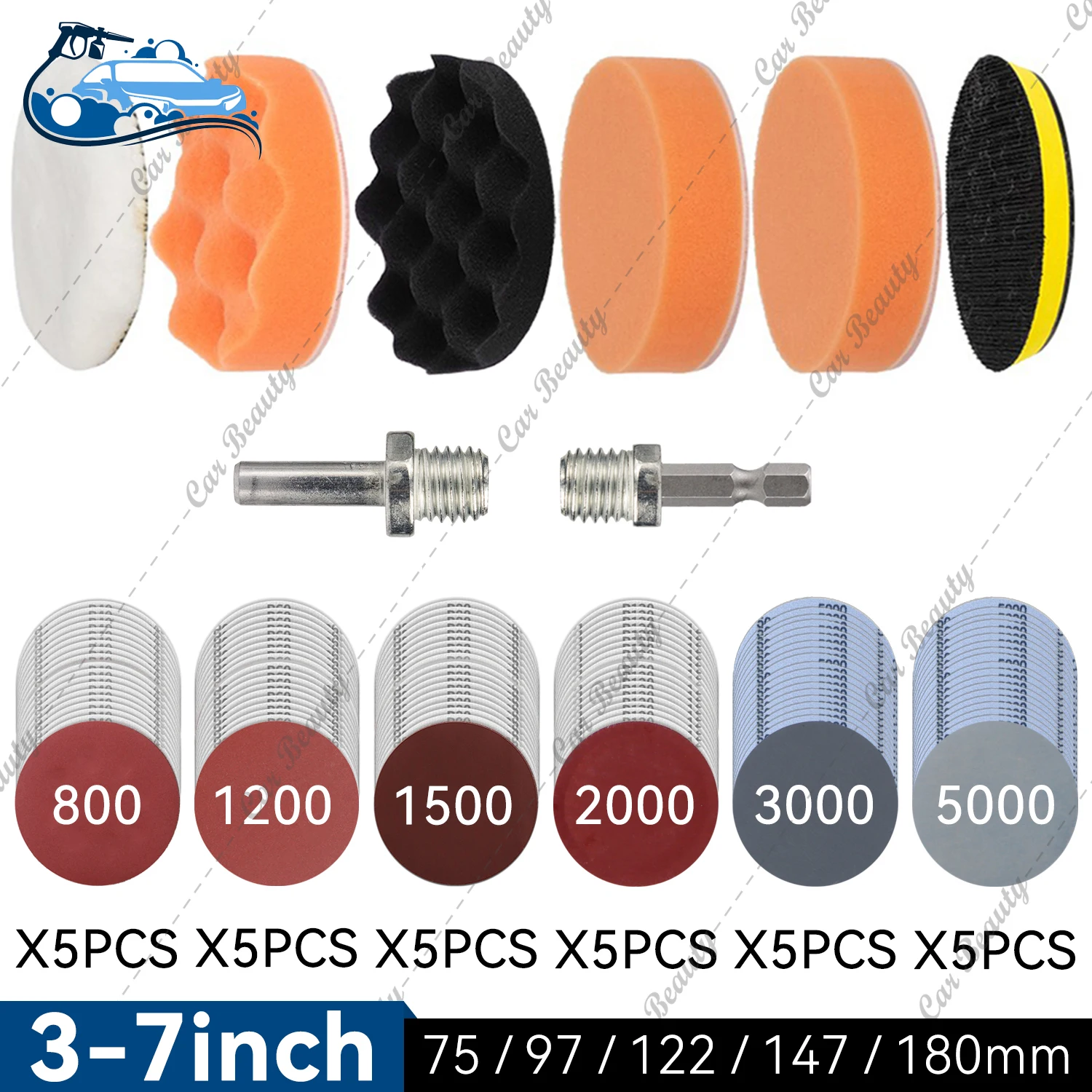 3 4 5 6 7 Inch Car Detailing Waxing Sponge Kit Sandpaper Disc Pad With M10 M14 Hex Drill Adapter for Auto Headlight Polishing