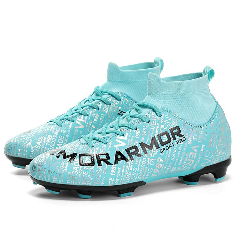 Футбольные бутсы 31-48 Футбольные бутсы унисекс Высококачественные кожаные тренировочные бутсы большого размера с высокими эластичными носками и искусственным покрытием с шипами 48 циан