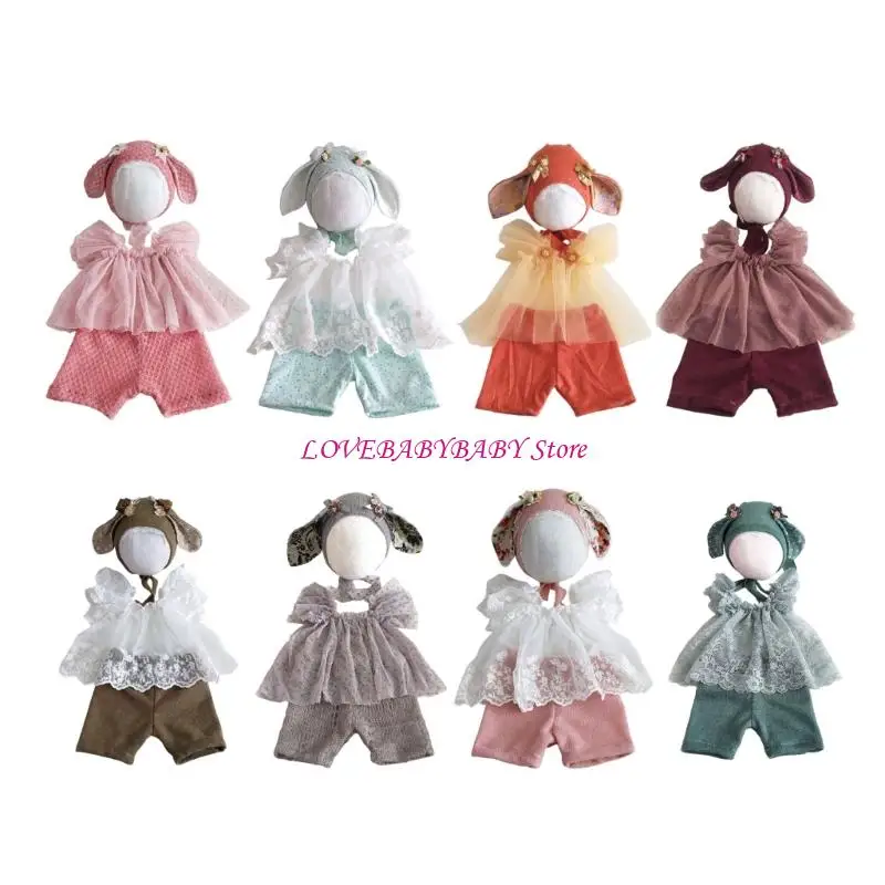 Девочки кружевные новорожденные платье с животным ушной шляпой 3pcs детская фотография наряд 4xbc