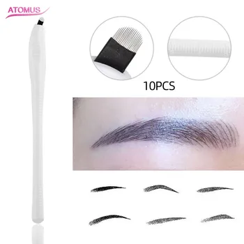 10pcs Manual Microblading Pen with Needles Plastic Handle Makeup Tool Permanent Makeup Disposable Microblading Pens