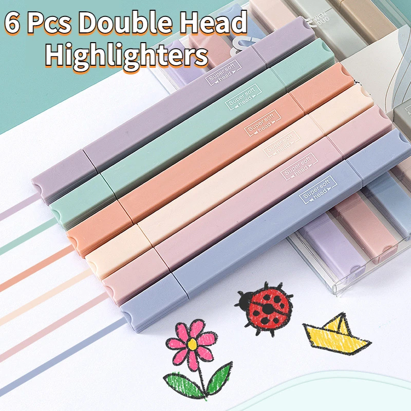 Хайлайтеры с двойной головкой, милые эстетичные текстовые маркеры и ручки без кровотечения для журнала, планировщика, заметки, школьные и офисные принадлежности, 6 шт.