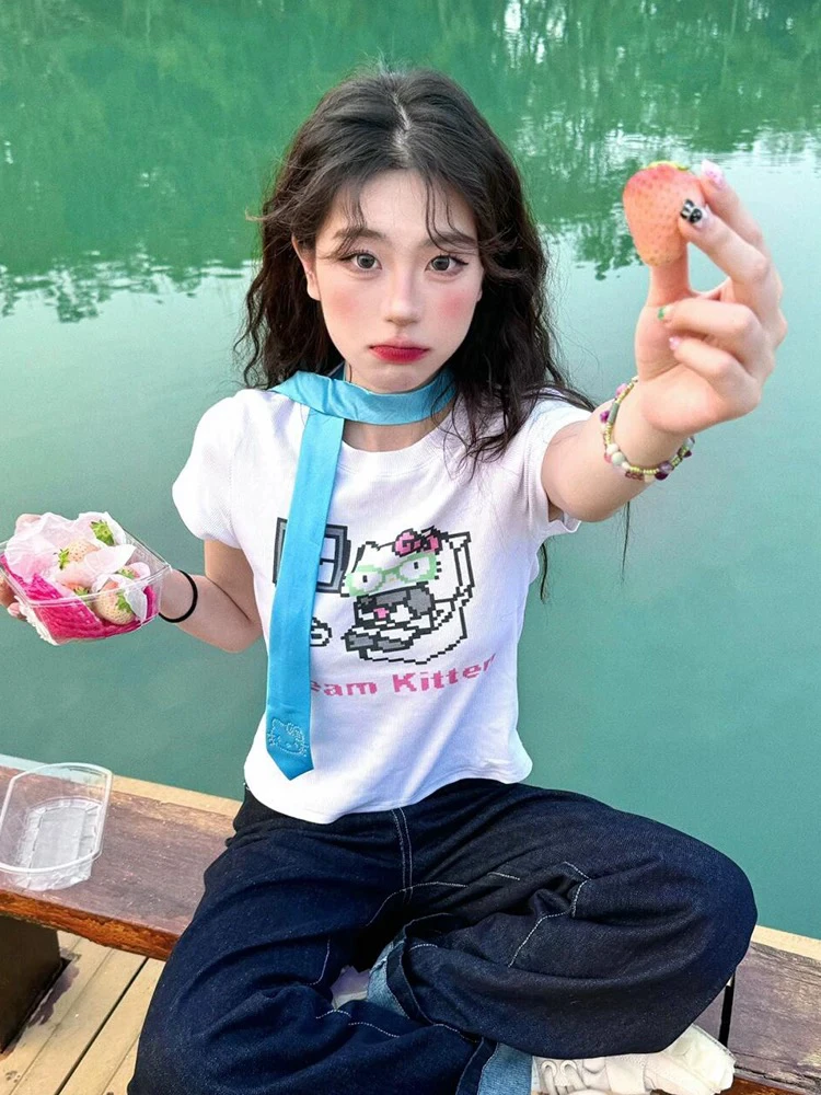 Летняя утягивающая футболка с принтом Hellokit ort Sve, женская белая футболка Spicy Girl ort Ins Faion, креативный топ с принтом