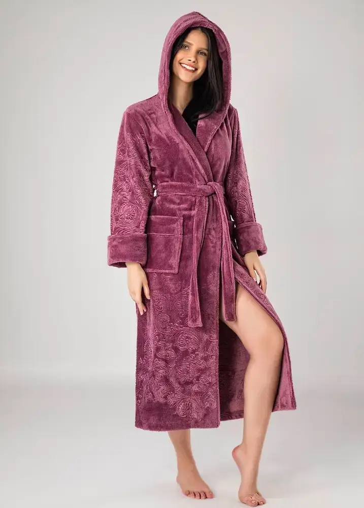 Халат женский Nusa 8655 murdum с капюшоном бамбук/махра s;m;l/xl;xxl, Фиолетовый