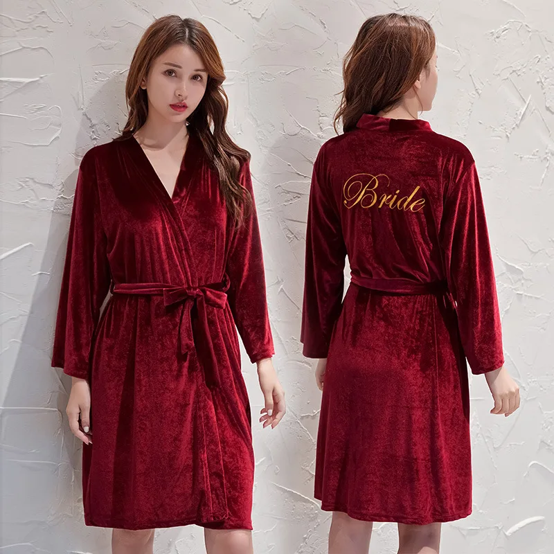 Халат-кимоно Женский, из мягкого вельвета с вышивкой и надписью, женское белье для домашней носки