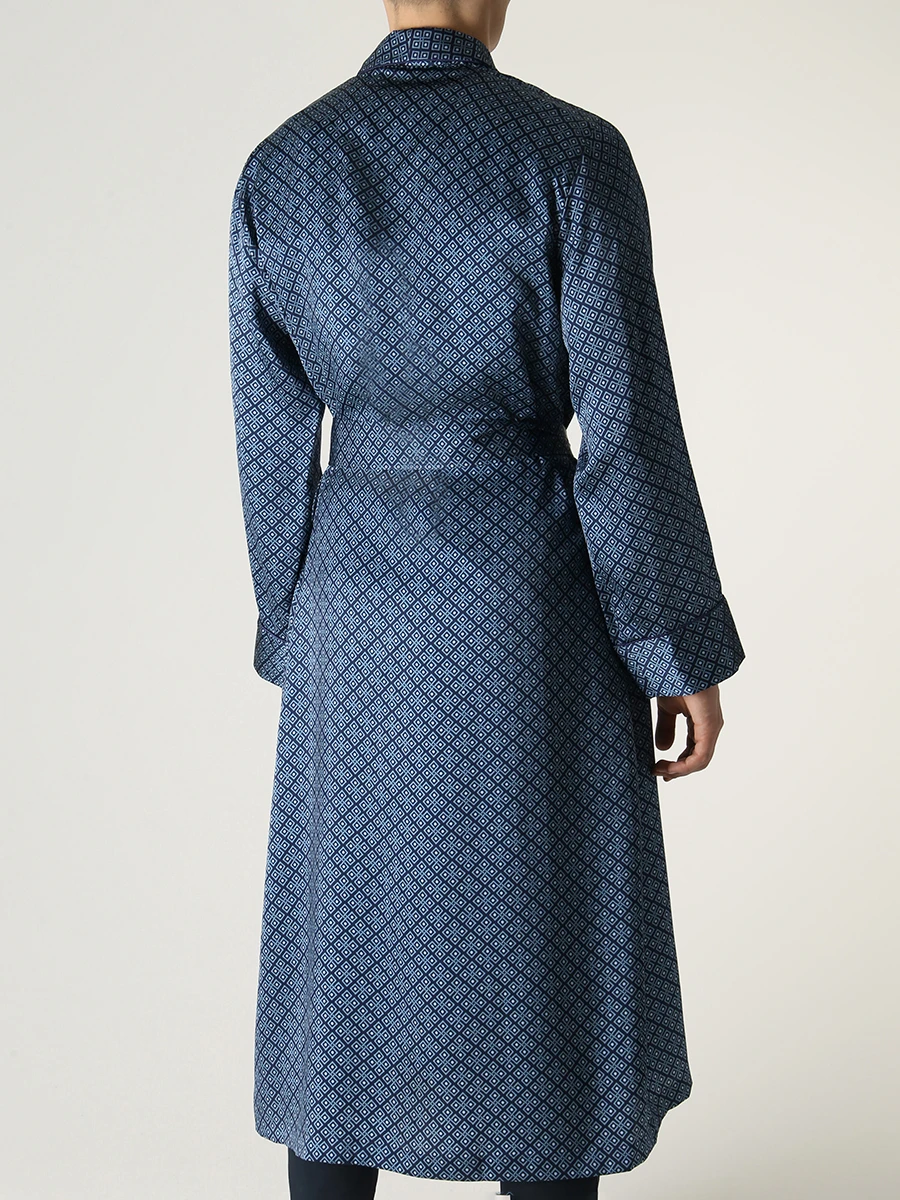 -Синий с принтом халат из шелка от DEREK ROSE.