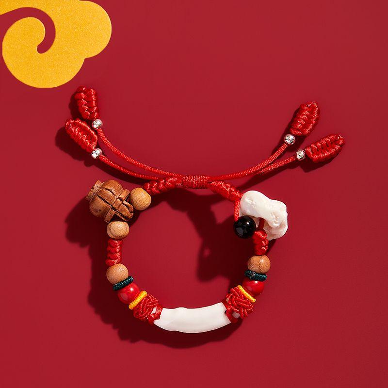 Ханчжоу Детский Красный Веревочный Браслет Эссенция Кости Поросенка Персиковое Дерево Защита Тела Шнурок для Ношения Судорожная Кость Поросенка Собачий Клык Персиковая Корзина Подвеска 2025 Dog tooth peach basket (0-6 months 10cm)